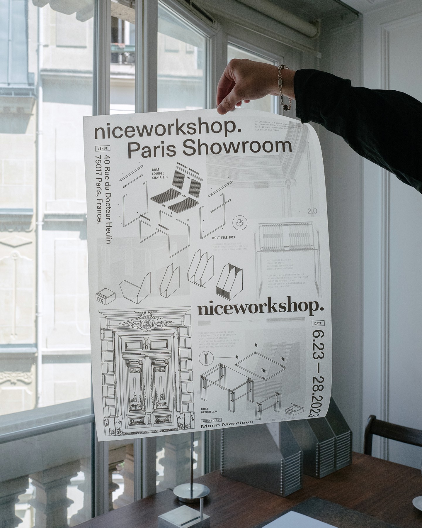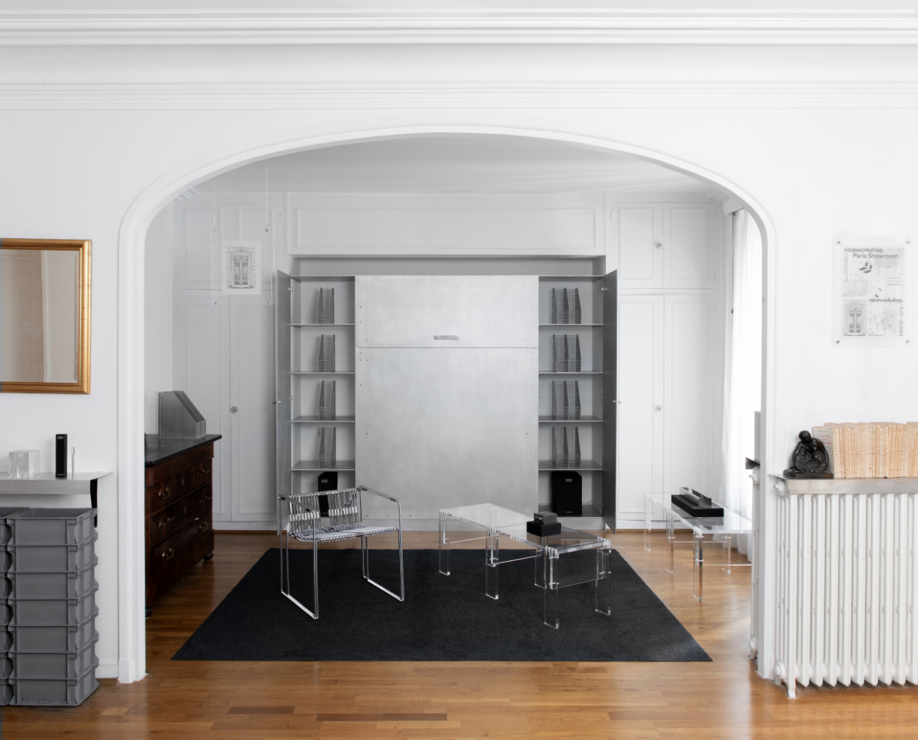 The first Niceworkshop show in Paris displays a collection of their signature furniture pieces and objects within the 40Dr.