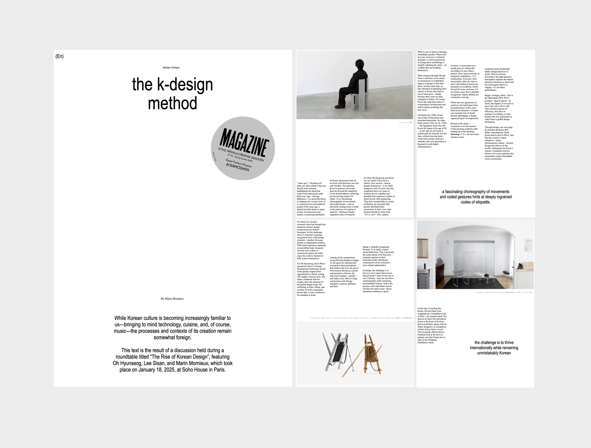 Paris based Magazine Magazine review comissionned Marin Mornieux to compile key learnings from the previously held lecture about Korean design with Oh Hyunseog & Sisan Lee in January in Paris earlier this year.